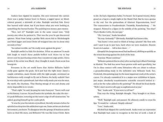 "A highbrow fever dream of a novel, The Spectacle is tailor-made for the discerning reader who craves getting lost in a world that is chic and severe in equal measure. I inhaled this decadent glimpse into the underbelly of the art world, led with aplomb by a character of such disturbing charm, the shades of Tom Ripley and Patrick Bateman were impossible to ignore. Anna Barrington delivers a biting and brilliant debut more than deserving of its perfect title."Rachel Koller Croft, USA TODAY–bestselling author of Stone Cold Fox