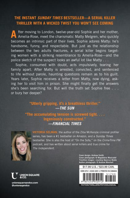 Matty Melgren is a convicted serial killer serving life without parole for the murders of several women in London in the 1980s. He has consistently protested his innocence, and the evidence against him was largely circumstantial. At the time of his arrest, Matty’s girlfriend was Amelia-Rose, a single mother to 12-year-old Sophie. Sophie adores Matty. He’s handsome, funny, respectable—she could never suspect him of the brutal killings in the headlines. Then a police sketch of a suspect is released that looks a lot like Matty. Was it him? Sophie is consumed with doubt and guilt, causing her to act impulsively, ripping her family apart. Years later, she is still haunted by her actions. Was she wrong to have done what she did all those years ago? Then Sophie receives a letter from Matty—he’s dying and asks her to visit him in prison. Will she finally get the answers she needs to be able to reclaim her future?